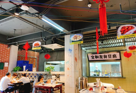 文和友龍蝦館于2018年進駐創意園,室內極致復古,穿越30年前的老長沙,走進文和友就像走進了時光穿梭機,明星的收割機。美食小龍蝦、臭豆腐。豬油拌飯。營業情況良好。